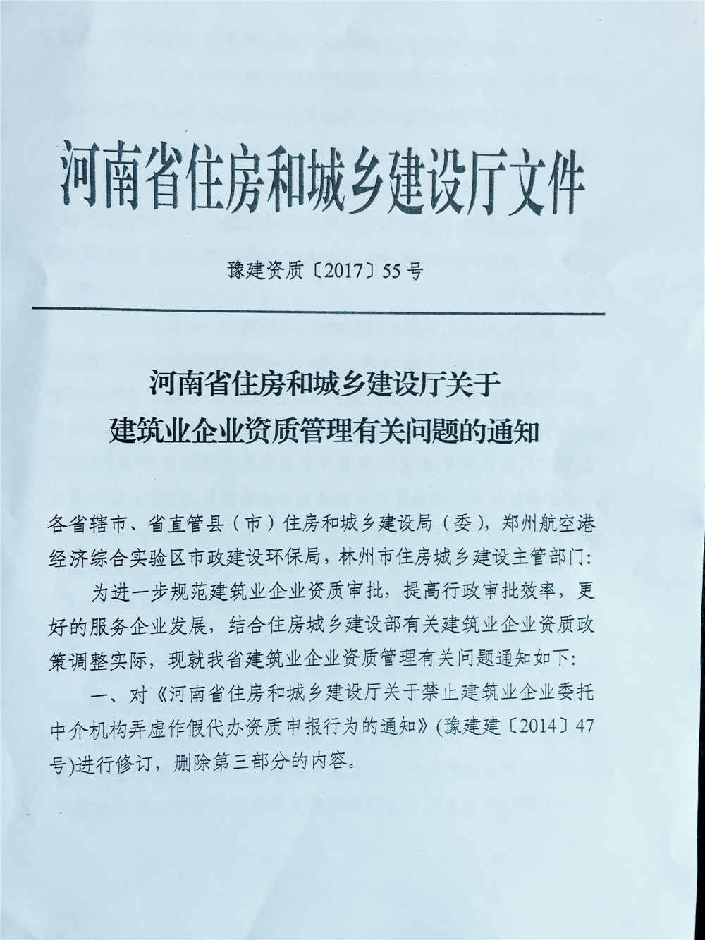 河南省住房和城鄉(xiāng)建設(shè)廳關(guān)于建筑業(yè)企業(yè)資質(zhì)管理有關(guān)問題的通知