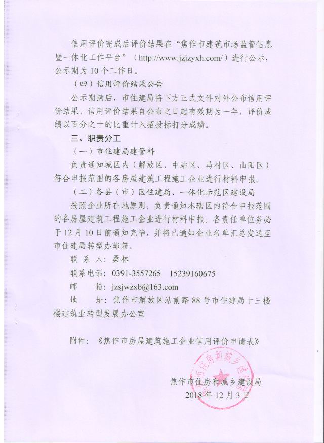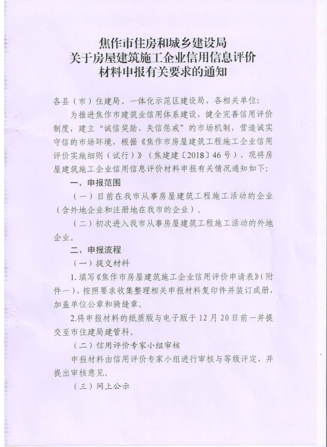 焦作市住房和城鄉(xiāng)建設(shè)局關(guān)于房屋建筑施工企業(yè)信用信息評(píng)價(jià)材料申報(bào)有關(guān)要求的通知