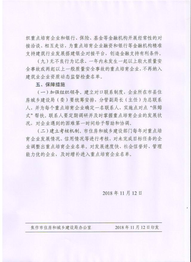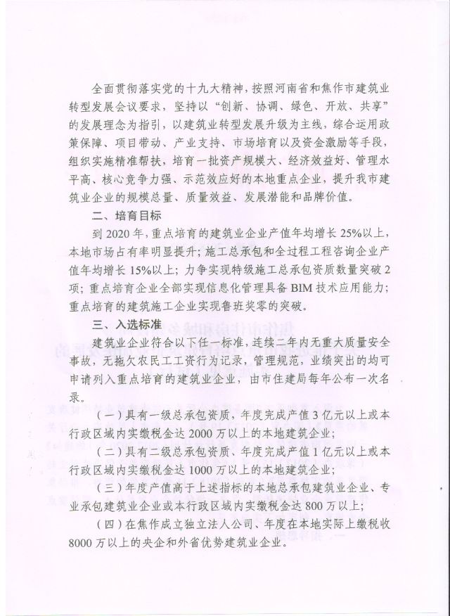 焦作市住房和城鄉(xiāng)建設(shè)局關(guān)于申報重點培育建筑業(yè)企業(yè)有關(guān)要求的通知