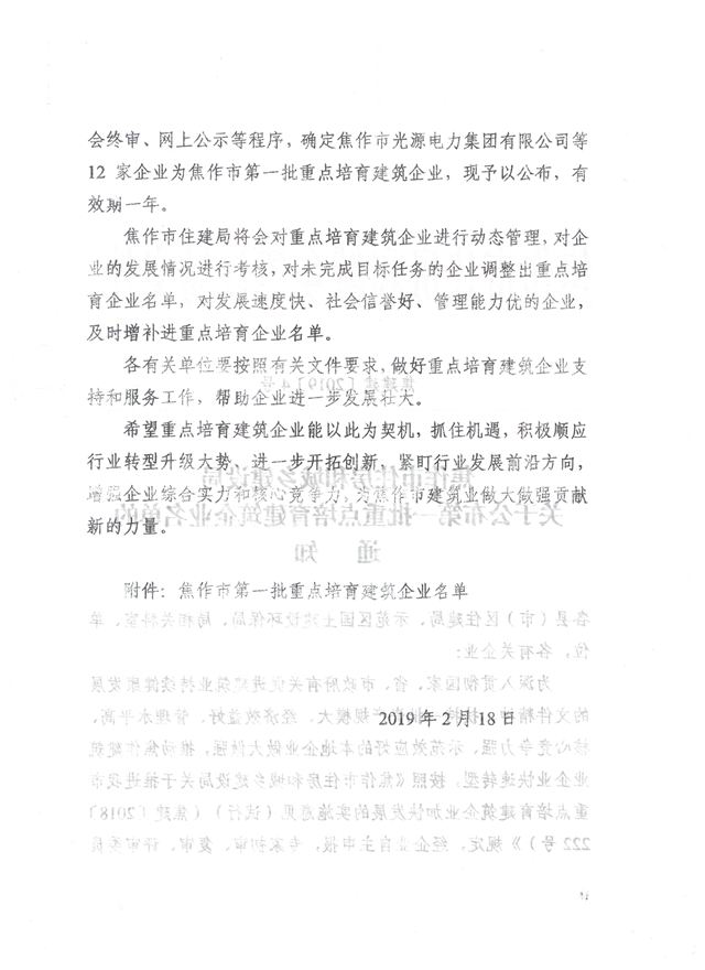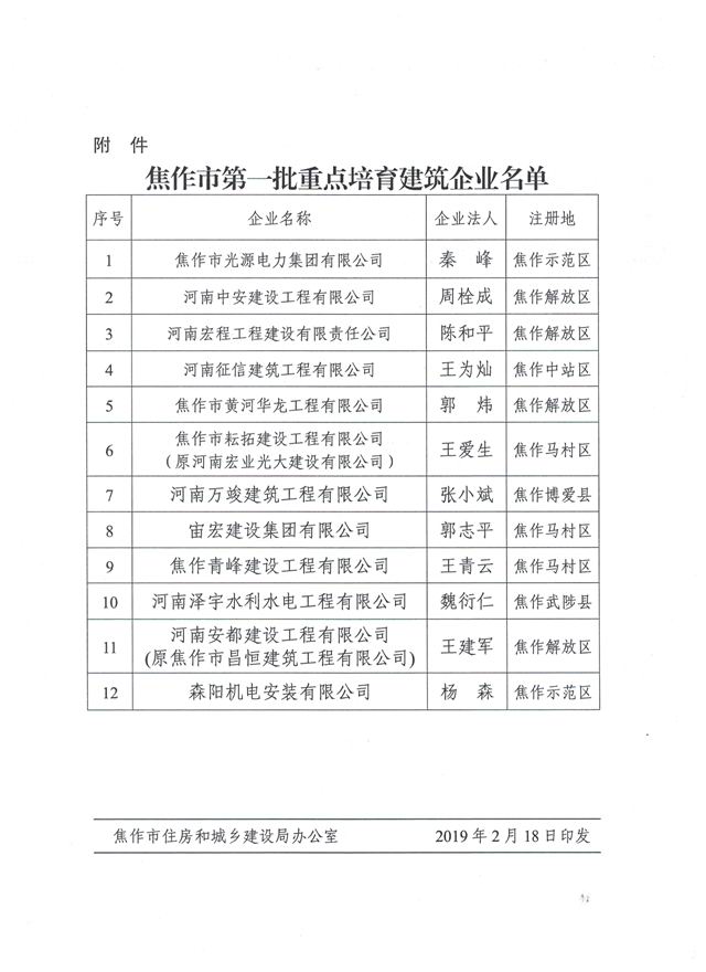 焦作市住房和城鄉(xiāng)建設(shè)局關(guān)于公布第一批重點培育建筑企業(yè)名單的通知
