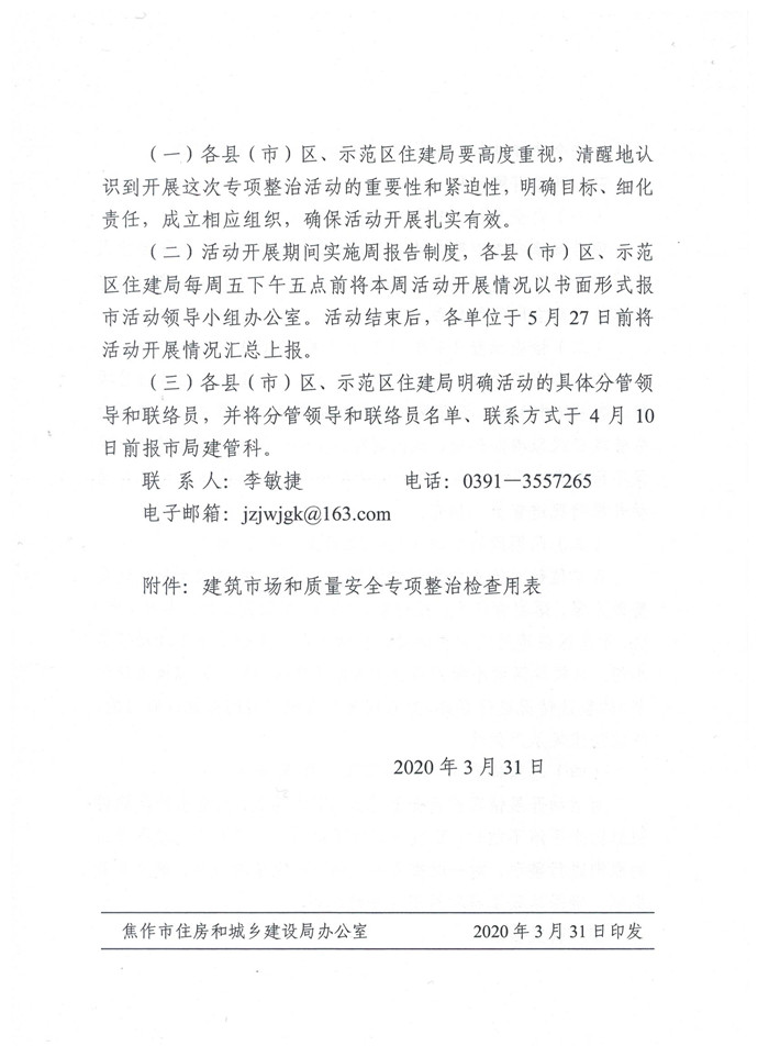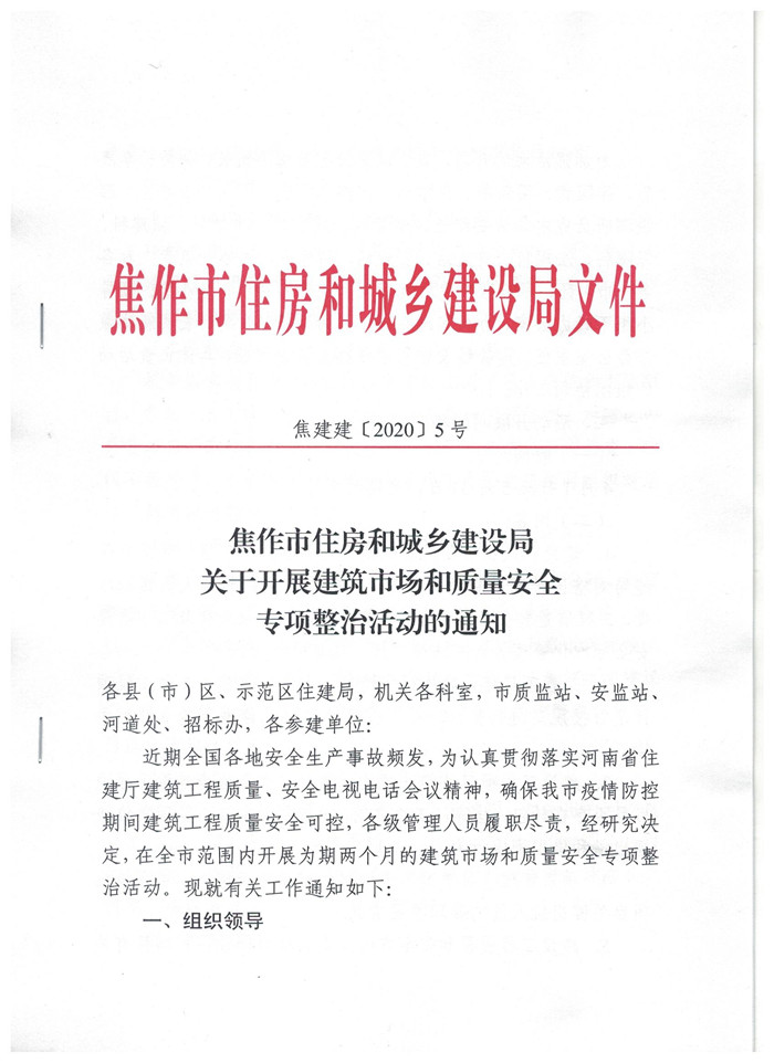 焦作市住房和城鄉(xiāng)建設(shè)局關(guān)于開展建筑市場(chǎng)和質(zhì)量安全專項(xiàng)整治活動(dòng)的通知