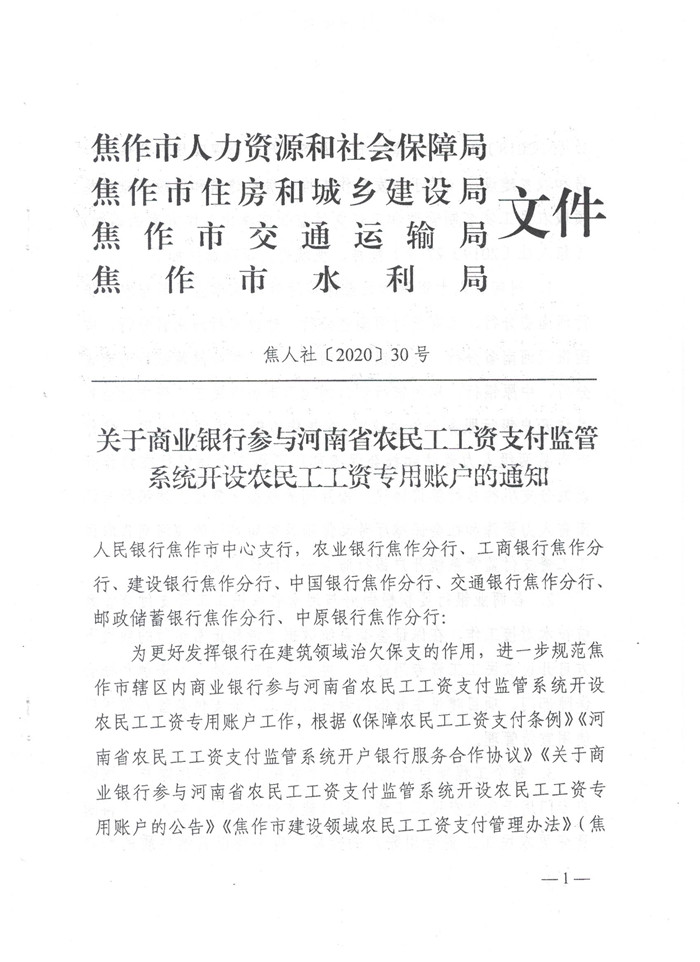 關于商業(yè)銀行參與河南省農民工工資支付監(jiān)管系統(tǒng)開設農民工工資專用賬戶的通知