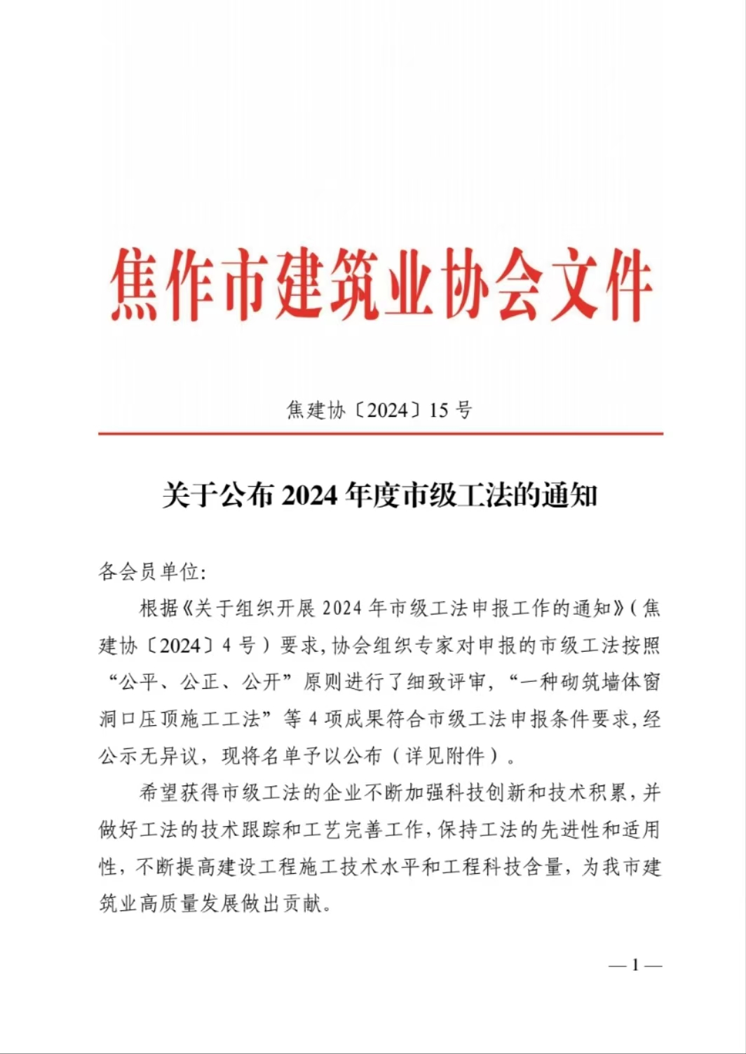 關(guān)于公布2024年度焦作市建筑業(yè)新技術(shù)應(yīng)用示范工程(第二批)名單的通知
