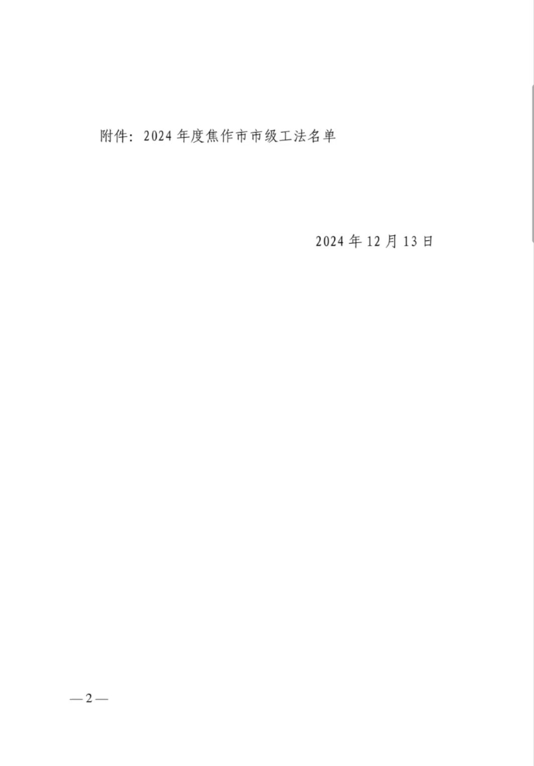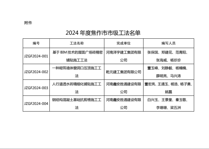 關(guān)于公布2024年度焦作市優(yōu)質(zhì)結(jié)構(gòu)工程 (第二批)的名單的通知